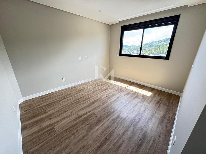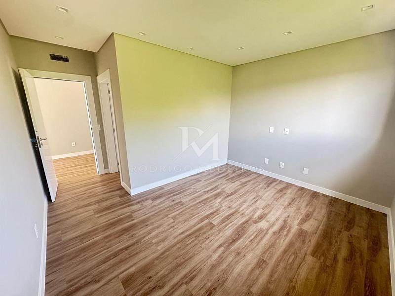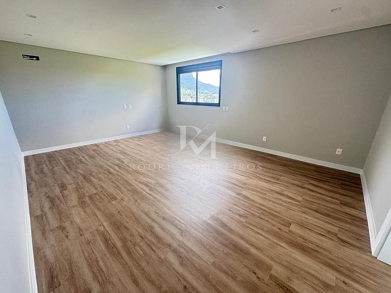 No segundo andar estão as três suítes, bem distribuídas e com excelente aproveitamento de espaço. Duas delas possuem aproximadamente 14,5 m², enquanto a suíte master se destaca com closet e sala de banho com banheira, totalizando cerca de 39 m². O pavimento conta ainda com roupeiro e espaço destinado a home office, reforçando a funcionalidade do projeto.