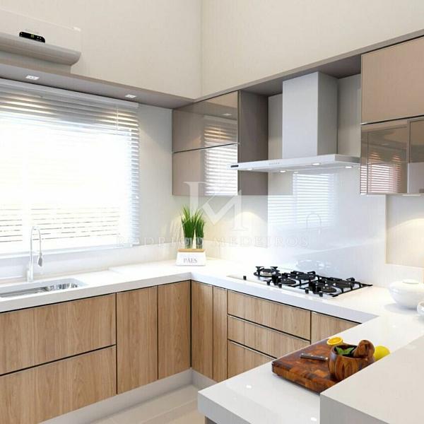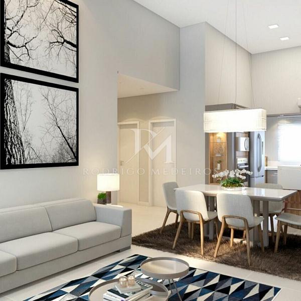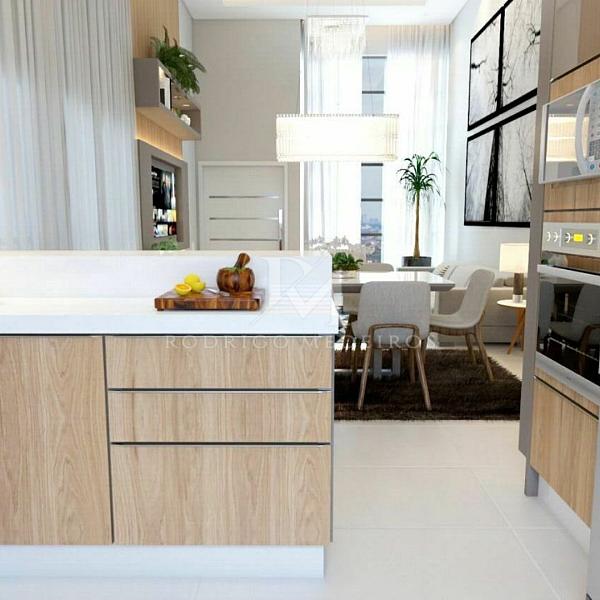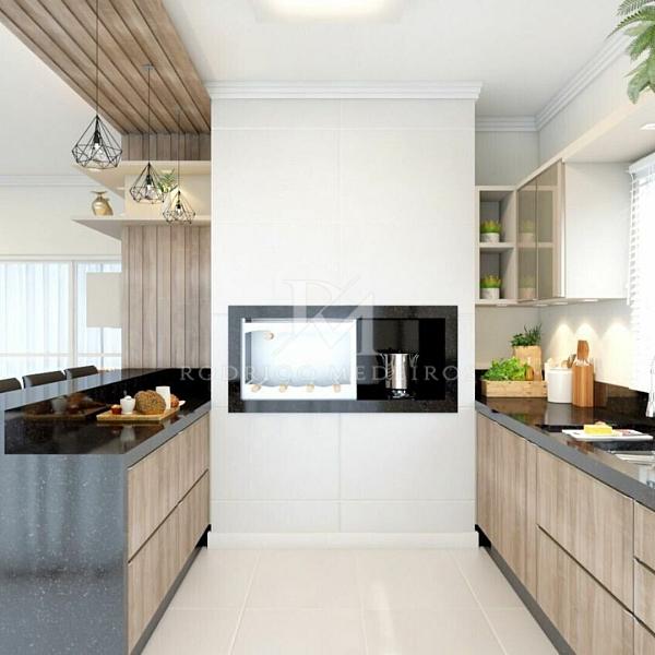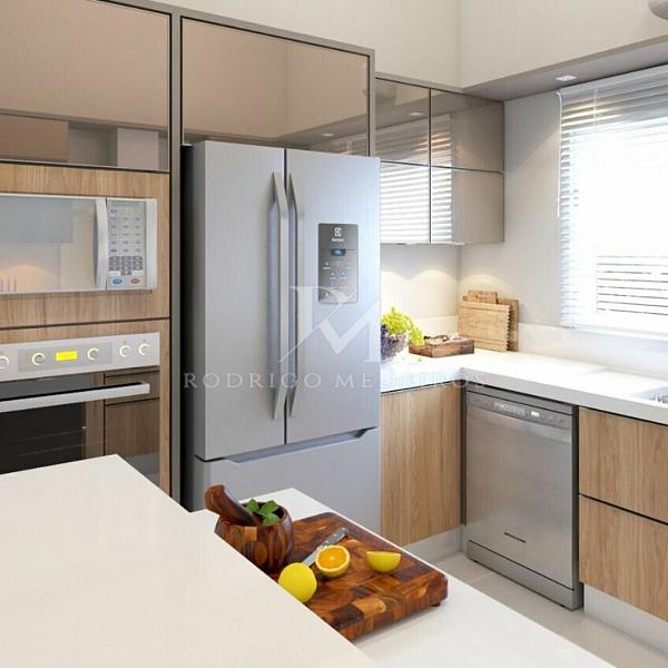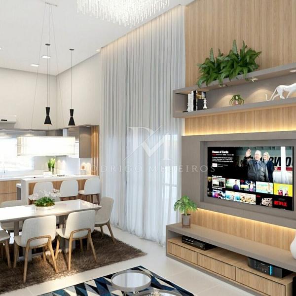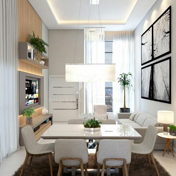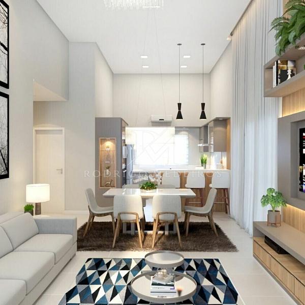 • Ambiente integrado com pé direito duplo, conectando a cozinha, a sala de estar e a sala de jantar, proporcionando uma sensação de amplitude e luminosidade