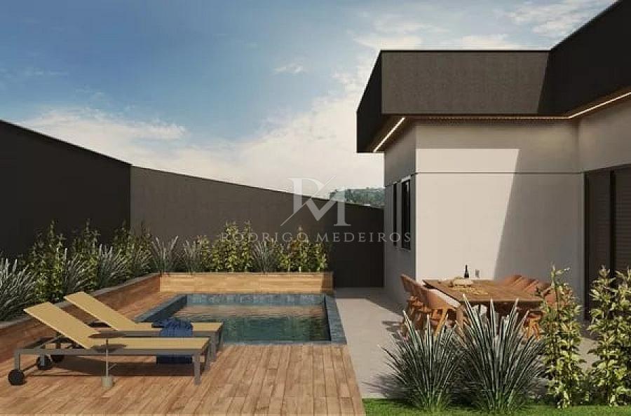 A área externa conta com uma piscina de concreto equipada com hidromassagem, pensada para oferecer relaxamento e lazer com elegância. A sustentabilidade é um diferencial marcante desta casa, com aquecimento solar de água, sistema de energia fotovoltaica e captação de água da chuva, promovendo economia e responsabilidade ambiental. Toda a infraestrutura é moderna, com preparação para carregamento de carro elétrico, pontos para ar-condicionado, esquadrias de alumínio com persianas automatizadas, fechadura eletrônica e estrutura para alarme, câmeras e aspiração central.