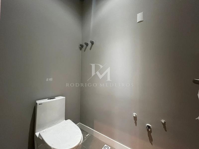 O pavimento principal abriga uma área social bem distribuída, com sala de estar, lavabo, cozinha integrada e lavanderia. O piso vinílico e o porcelanato garantem sofisticação e durabilidade ao projeto, enquanto a espera para ar-condicionado e o sistema de água quente nas torneiras e chuveiros reforçam o conforto no dia a dia.