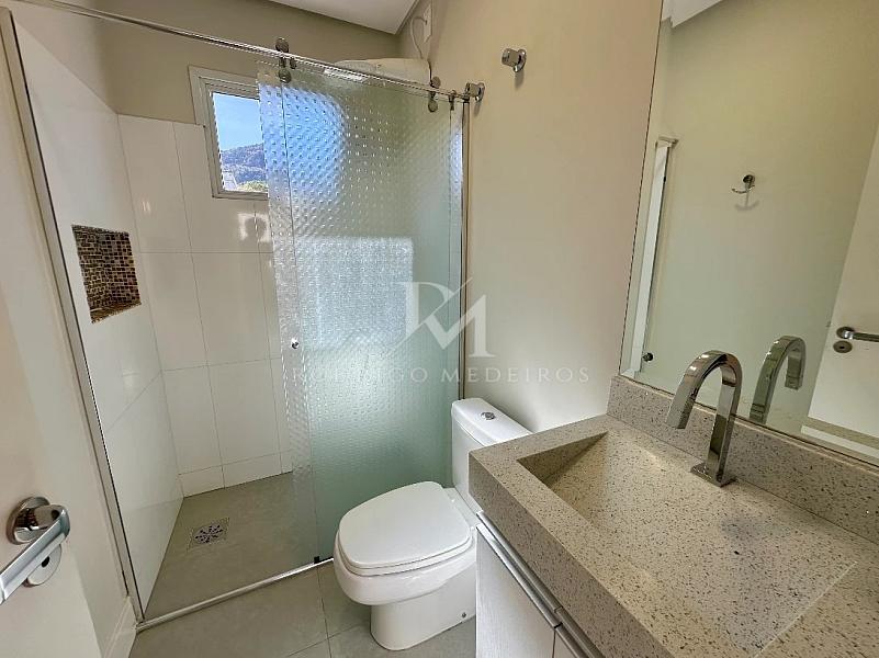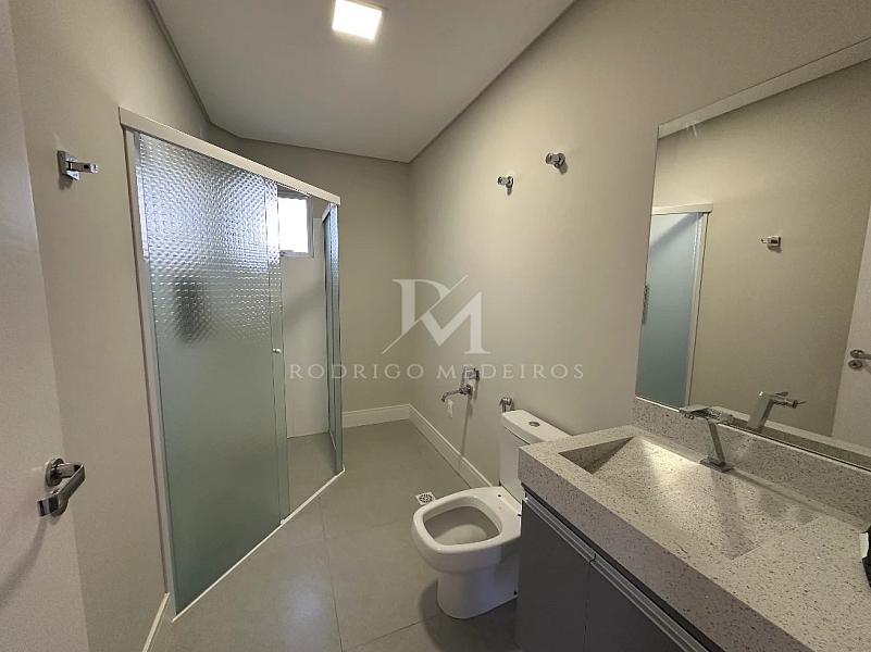 Na área íntima, o imóvel dispõe de três dormitórios, sendo uma suíte com closet, oferecendo privacidade e bom aproveitamento dos espaços. Os ambientes contam com persianas integradas, infraestrutura para ar-condicionado e acabamento em porcelanato, reforçando a sensação de conforto e durabilidade.