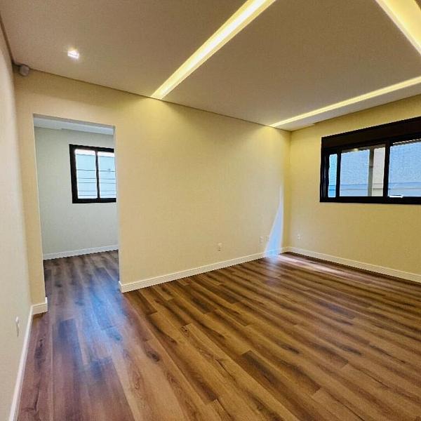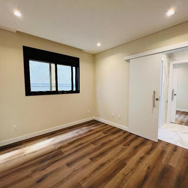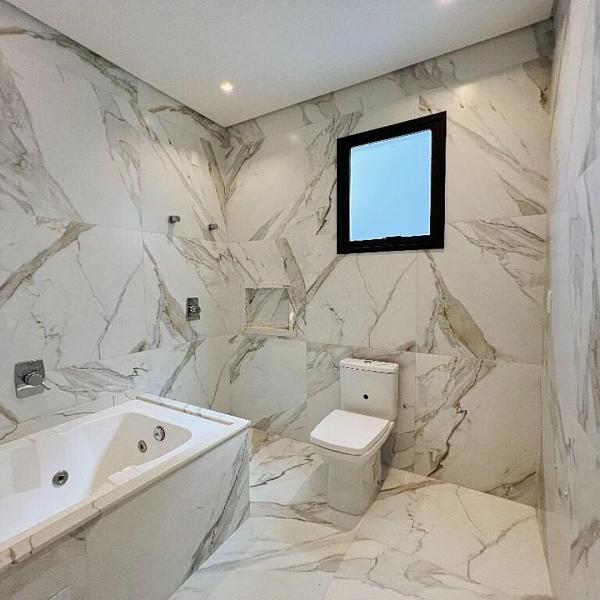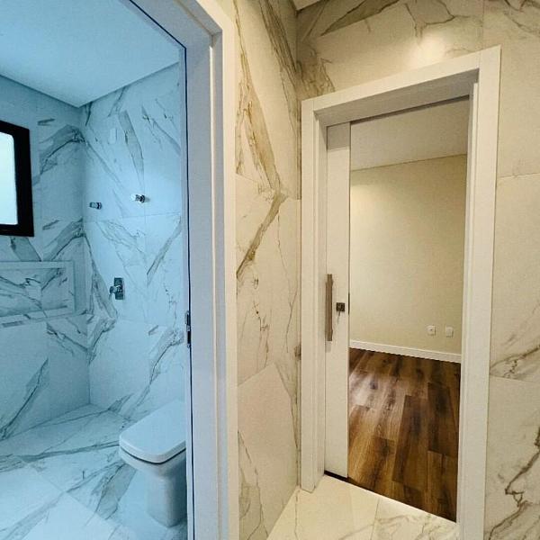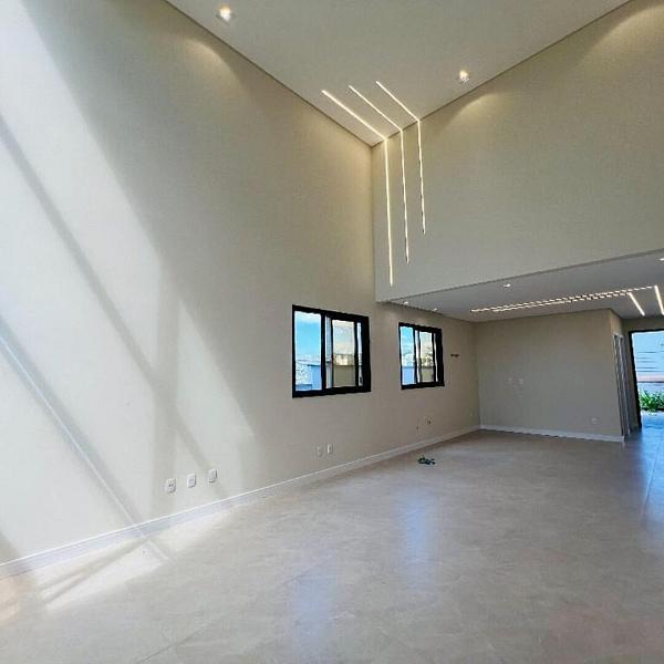 A residência conta com três suítes, sendo uma máster com closet e ofurô, garantindo privacidade e bem-estar em todos os detalhes. Os ambientes sociais são integrados e envolventes, com sala de estar de pé-direito duplo, sala de jantar e cozinha em conceito aberto.