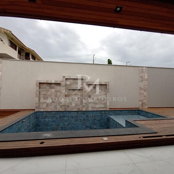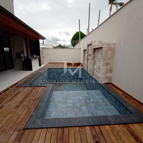 • Piscina com ilha de fogo e deck de madeira, criando um espaço relaxante e sofisticado.