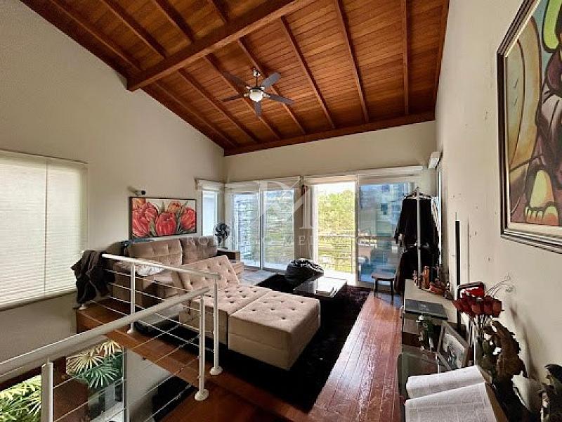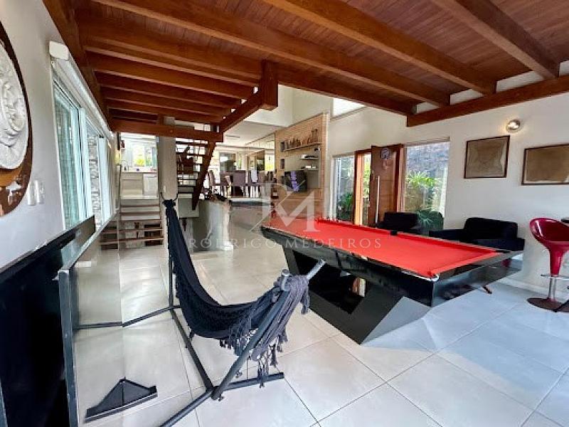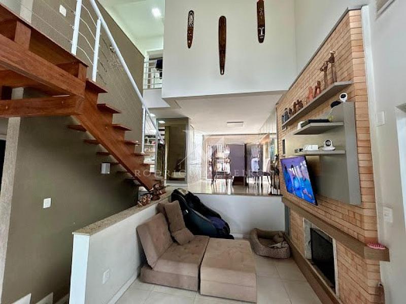 No pavimento superior, são 3 suítes generosas, incluindo uma suíte máster com sacada e uma vista encantadora para o lago. No térreo, o destaque vai para a sala de estar com lareira, mesa de bilhar e acesso direto à área externa — um convite ao convívio e à contemplação.