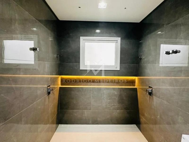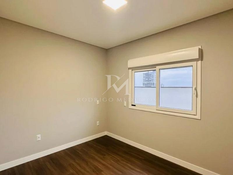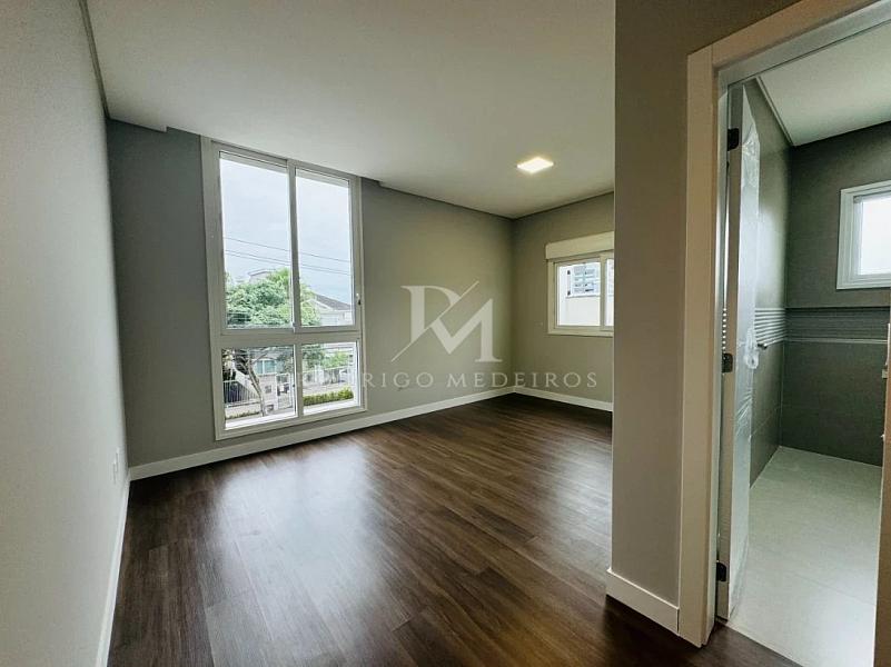 A área íntima oferece três suítes, incluindo uma suíte principal com closet, proporcionando privacidade e conforto para todos os moradores. Os dormitórios contam com piso vinílico, enquanto as demais áreas recebem pisos de grande formato retificado, reforçando a estética contemporânea do imóvel.
