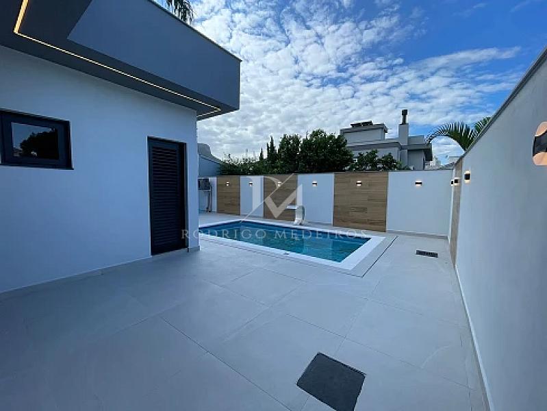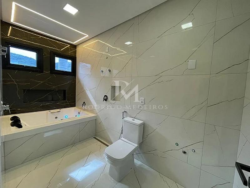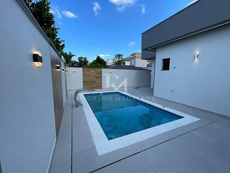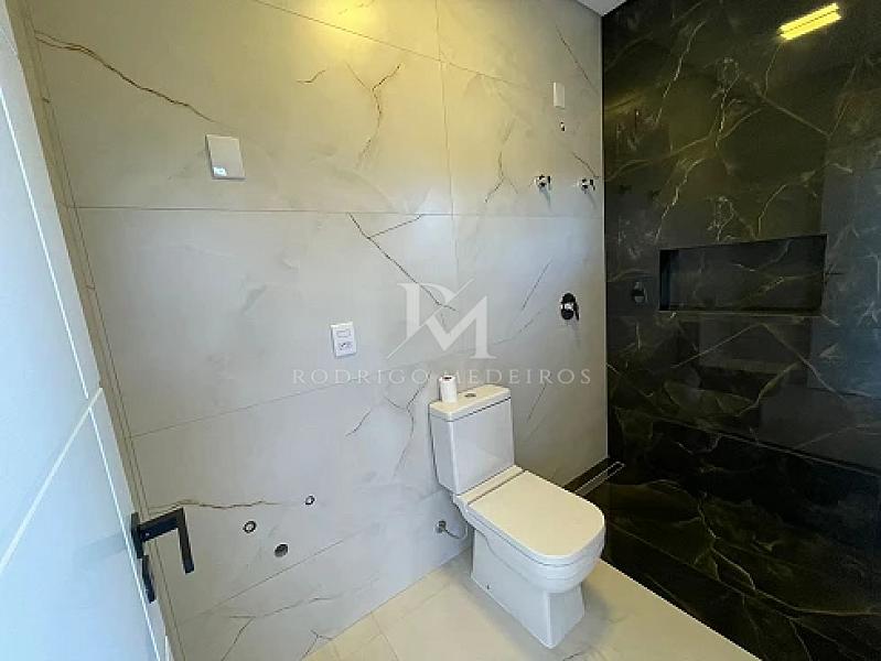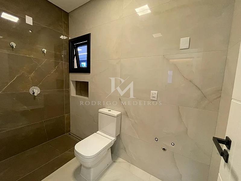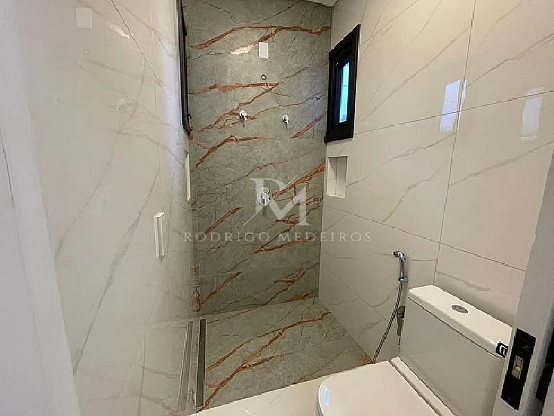 Os acabamentos reforçam o padrão do imóvel, com porcelanato premium, piso vinílico de alta qualidade, esquadrias em PVC na cor preta e persianas automatizadas. A casa ainda conta com sistema de aquecimento de água por placas a vácuo e boiler de alta capacidade, agregando eficiência e conforto.