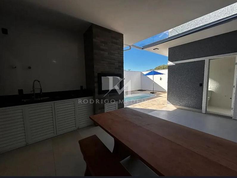 São 3 quartos, sendo 2 suítes climatizadas, além de 4 banheiros distribuídos de forma funcional. A área gourmet completa, com churrasqueira a carvão, se conecta à área externa, onde a piscina em fibra branca compõe um cenário convidativo para momentos de lazer e relaxamento.