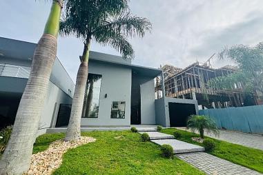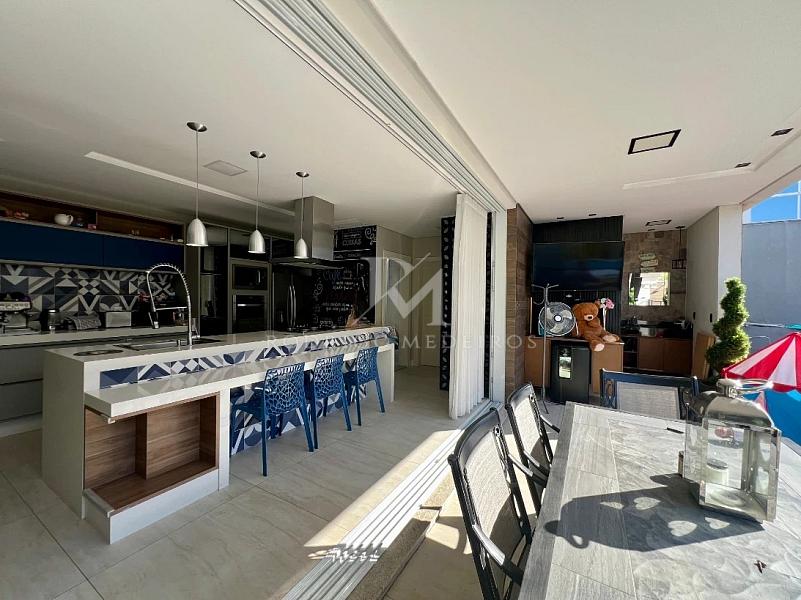 Com 291 m² de área construída, a casa apresenta quatro dormitórios, sendo duas suítes, além de banheiros completos que atendem com praticidade a rotina da família e dos convidados. Os ambientes sociais são integrados, proporcionando fluidez entre estar, jantar e espaços de convivência, sempre valorizando iluminação natural e conforto térmico. O mobiliário planejado reforça a sensação de organização e elegância, criando um imóvel funcional e acolhedor desde o primeiro contato.