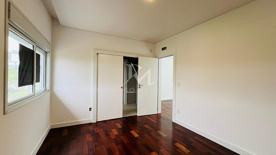 No pavimento superior, a área íntima foi pensada para proporcionar privacidade e funcionalidade, com quatro dormitórios — sendo duas suítes e duas demi-suítes — além de um mezanino que amplia as possibilidades de uso, seja como espaço de leitura, trabalho ou relaxamento.