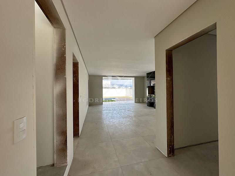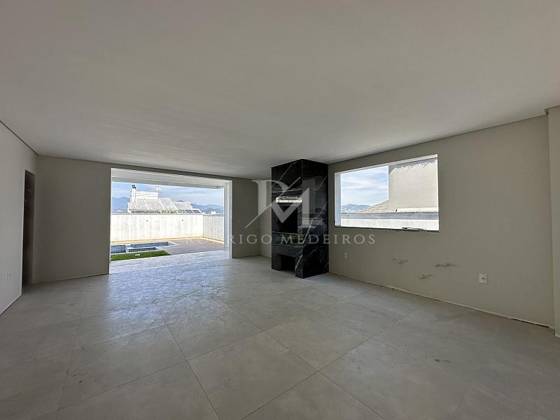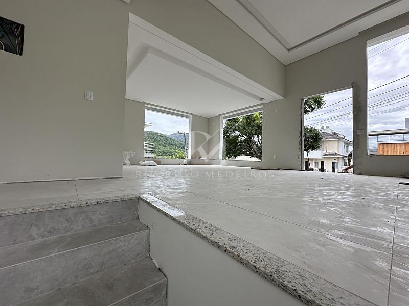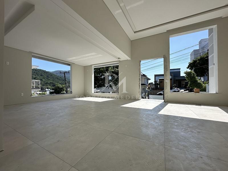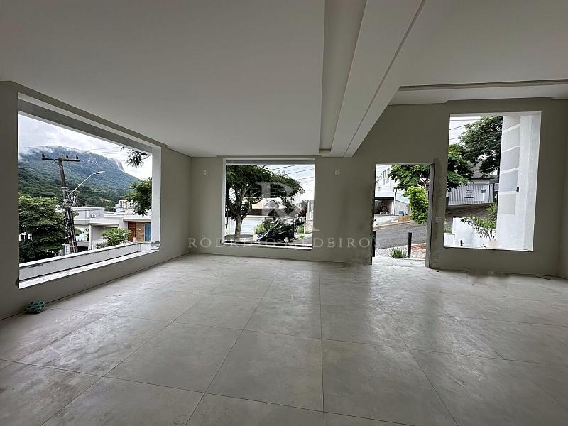 A casa conta com uma espaçosa sala de estar integrada à sala de jantar e à cozinha, proporcionando uma bela vista do Morro da Pedra Branca. O espaço é perfeito para relaxar em família ou receber visitas.