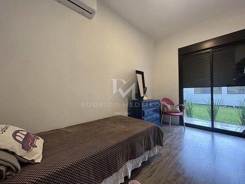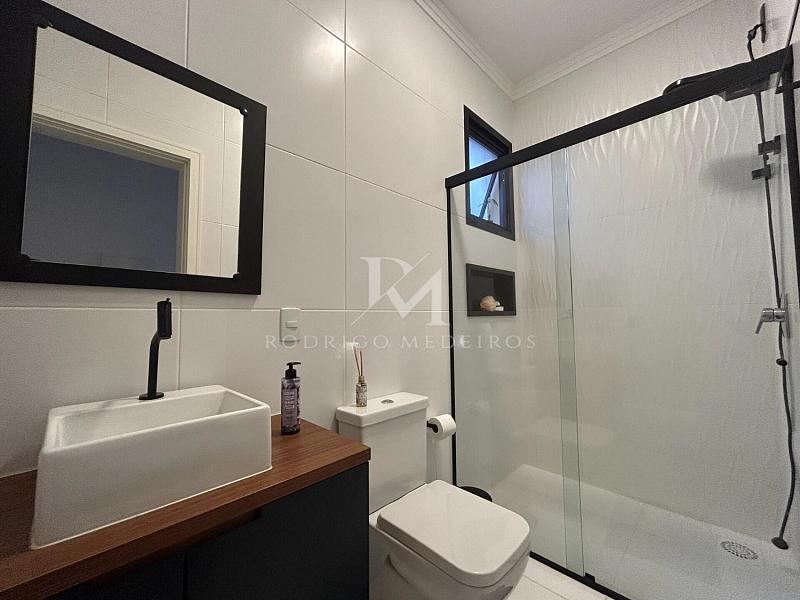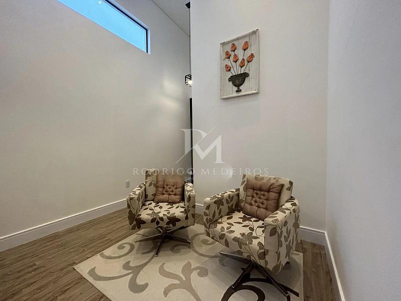 Os acabamentos foram cuidadosamente escolhidos para agregar valor e estilo: gesso rebaixado na sala, cozinha e banheiro, massa corrida nas paredes, piso laminado cinza e preparação para ar-condicionado. O imóvel ainda conta com portão eletrônico, jardim, medidores individuais e quatro vagas de garagem.