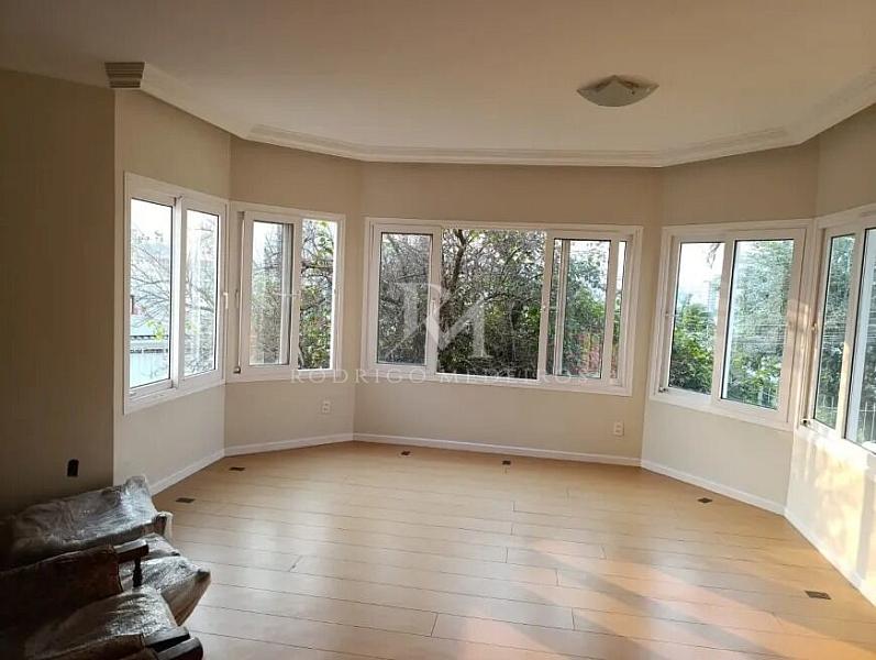Ambientes Internos: Sala principal com lareira, sala de TV, amplo escritório, cozinha espaçosa e área de serviço.