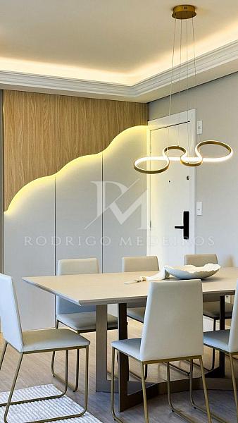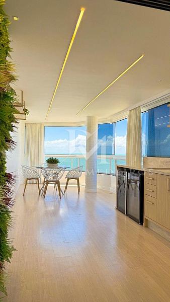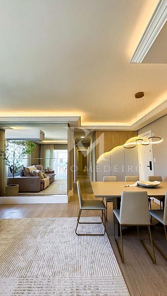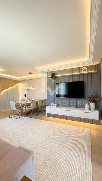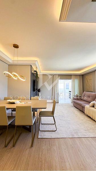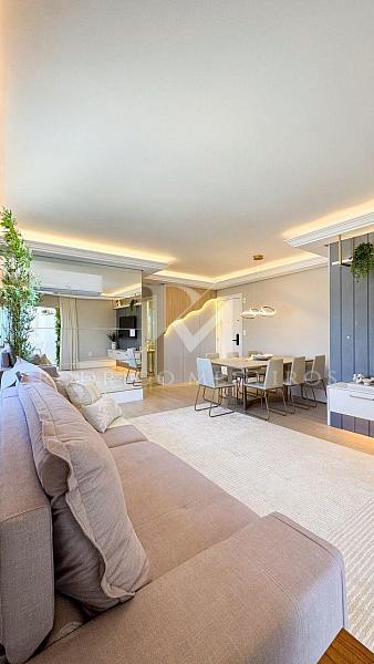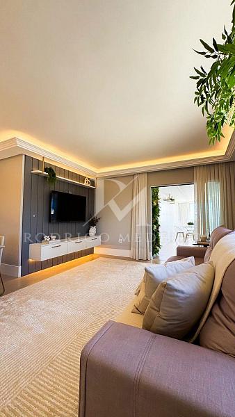 Com 129,19m² de área privativa, a cobertura foi inteiramente reformada e equipada, oferecendo três dormitórios — sendo uma suíte — além de ambientes climatizados, acabamento refinado e uma sacada com churrasqueira que convida a contemplar o litoral com conforto e sofisticação.