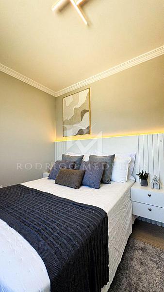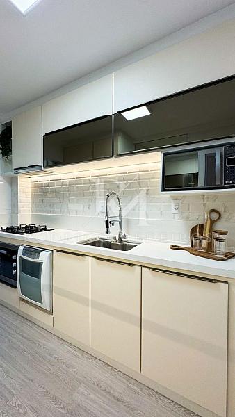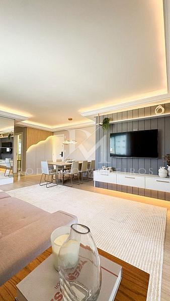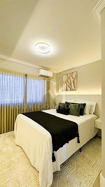 A unidade está finamente mobiliada e decorada, pronta para morar. A fechadura eletrônica com biometria e senha reforça a segurança com tecnologia, enquanto a climatização completa garante bem-estar em todas as estações.