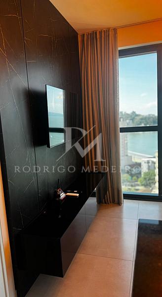 Com 40,14 m² de área privativa, o flat conta com um dormitório, living integrado, banheiro e vaga de garagem. O imóvel possui vista para o mar, proporcionando uma experiência única e valorizando ainda mais o investimento.